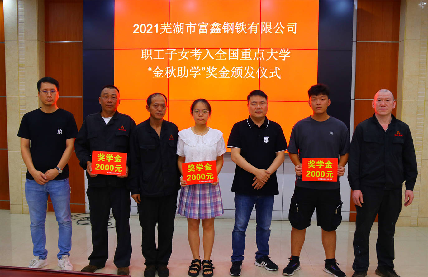 金秋助學(xué)。蕪湖市富鑫鋼鐵有限公司為2023年度考取高校的14名職工子女每人發(fā)放2000元助學(xué)資金。經(jīng)統(tǒng)計,自公司職工子女...